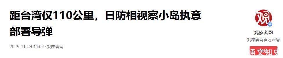 2025-11-24 11:04·观察者网 距台湾仅110公里,日防相视察小岛执意部署导弹