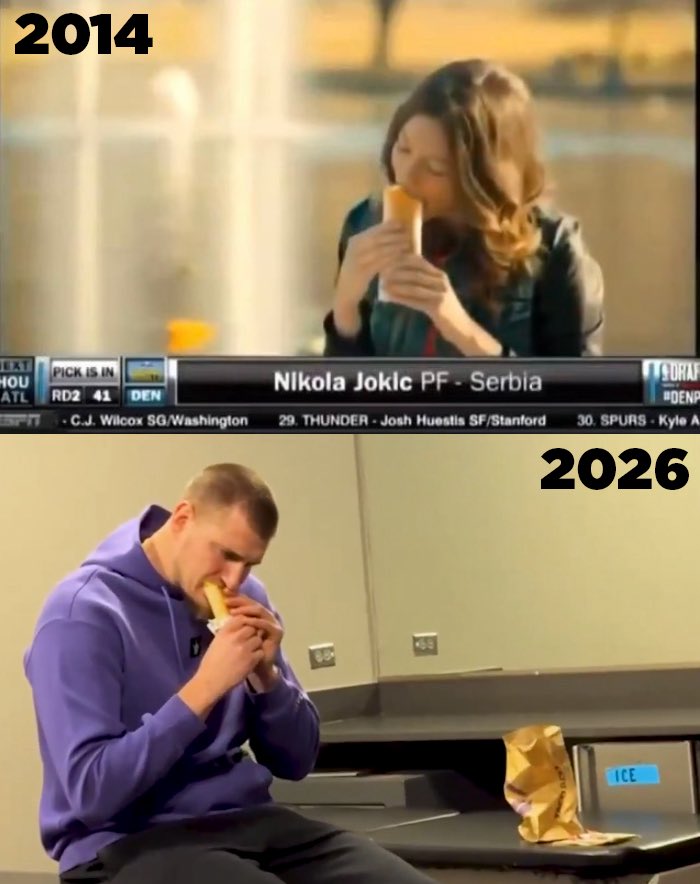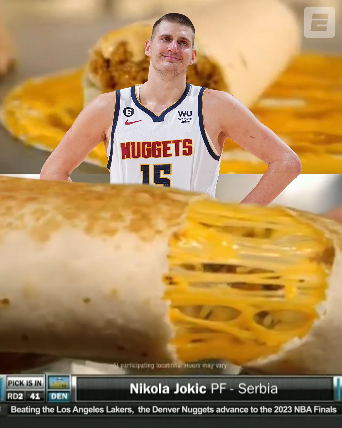 在2014年选秀大会,掘金以第41顺位选中约基奇时,转播方正播放的是这款墨西哥卷饼广告。